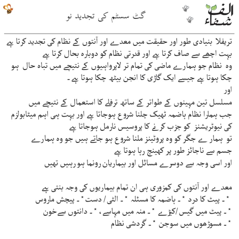 الف شفاء ترفلہ ہمیشہ تین-دو-ایک کے تناسب پر تیار کیا جاتا ہے